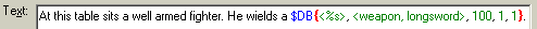 When creating new pick-pocket item databases it is essential that all entries are fitting together in their gramatical syntax. Only then they can be properly used in a $DB command. I will give you a short negative example: |