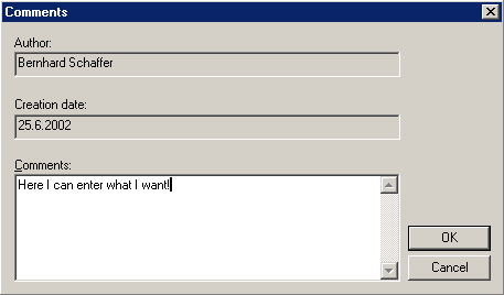 dialog window you can enter a comments text for the current database. This