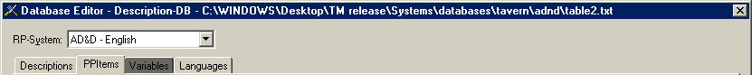 top row to change between the different tabs. (Descriptions/PPItems/Menu/Variables/Languages)
