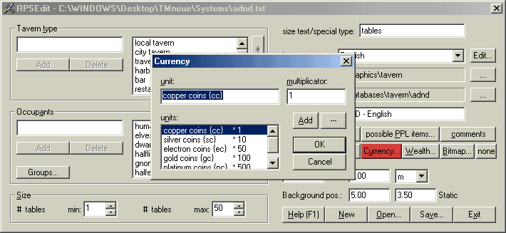 dialog is used to specify the currency system within the given RPS.
